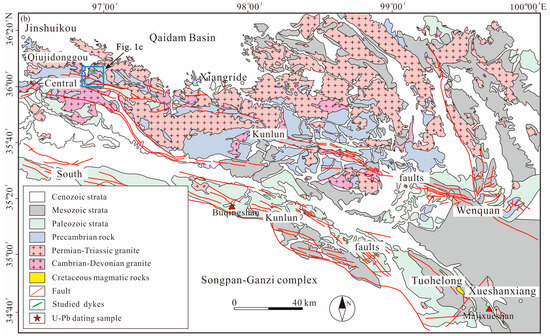 - Xiong, F.; Ma, C.; Chen, B.; Ducea, M.N.; Hou, M.; Ni, S. Intermediate-mafic dikes in the East Kunlun Orogen, Northern Tibetan Plateau: A window into paleo-arc magma feeding system. Lithos 2019, 340, 152–165. [Google Scholar] [CrossRef]
