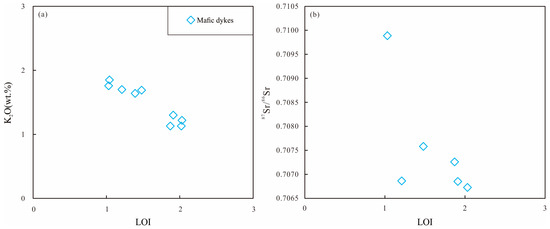 - Xin, W.; Sun, F.; Zhang, Y.; Fan, X.; Wang, Y.; Li, L. Mafic–intermediate igneous rocks in the East Kunlun Orogenic Belt, northwestern China: Petrogenesis and implications for regional geodynamic evolution during the Triassic. Lithos 2019, 346, 105159. [Google Scholar] [CrossRef]