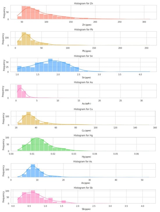 Histograms for the key elements linked to hydrothermal copper mineralization.