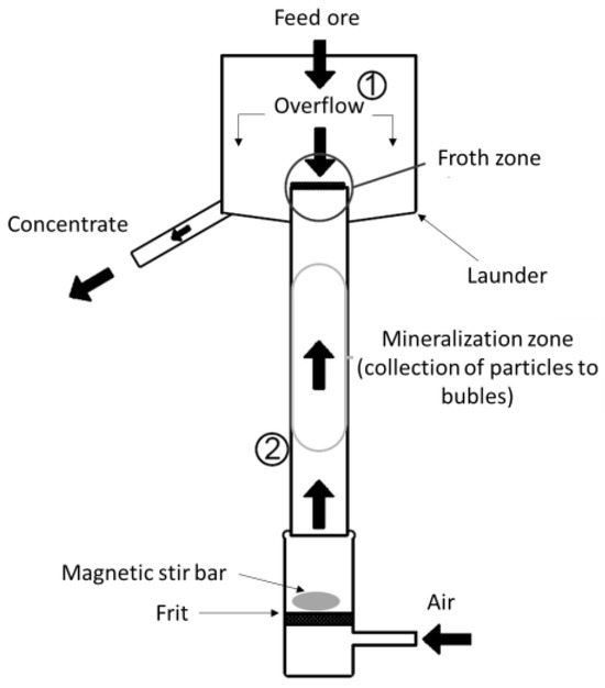 Partridge–Smith flotation cell, (1) feed zone ore; (2) Mixing or Mineralization zone.