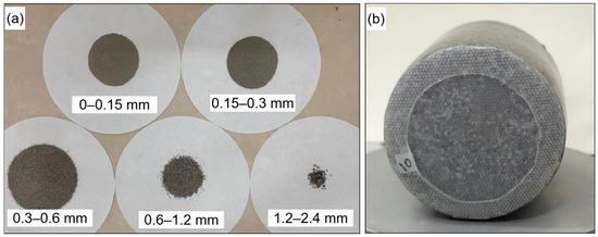 Surface heap leaching refers to the integrated production process of leaching useful components from ore by piling up the ore at specific sites after mining and spraying it with leaching solution [1,2,3,4]. This method is primarily used in industry for low-grade massive ores, as well as loose-sandstone-type ores that are difficult to leach in situ due to issues such as aquifer disruption or excessively low permeability. Currently, surface heap leaching is widely utilized in the metallurgy of metals such as copper, gold, and uranium due to its cost-effectiveness and simple process. Ore heap construction is a crucial step that influences heap leaching efficiency. During this step, it is essential to control the particle size of the ore to achieve an appropriate distribution within the ore heap [5,6]. This ensures that when the leaching solution is sprayed onto the surface of the ore heap, it can infiltrate through the heap at a moderate flow rate to reach the bottom of the heap. If the flow rate is too fast, adequate leaching reactions may not occur, while a slow flow rate can lead to leachate retention, affecting production efficiency. For large-volume blocky ores, crushing is typically required to reduce the particle size to less than 20 mm, increasing the surface area of the ore heap and enhancing the leaching efficiency. In contrast, loose sandstone ores exhibit the opposite trend, as they consist of granular deposits, with most particles having a diameter of less than 2 mm; while this ensures effective leaching, it results in low permeability of the ore heap. Additionally, loose sandstone has well-developed micropores, and under the influence of gravity from overlying layers, the ore heap gradually compacts from top to bottom, causing the seepage channels to shrink with increasing burial depth, leading to leachate retention issues in heap leaching. Using agglomeration methods to improve permeability by binding particles into blocks increases costs and significantly reduces the ore surface area, negatively influencing heap leaching efficiency [7,8]. Therefore, controlling the particle size of loose sandstone to improve its seepage characteristics is crucial for enhancing the efficiency of the heap leaching of such ores.