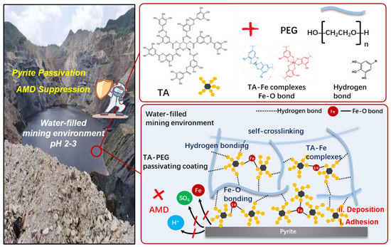 - Feng, J.; Zhou, C.; Yang, Q.; Dang, Z.; Zhang, L. Performance and mechanisms of PropS-SH/Ce(dbp)(3) coatings in the inhibition of pyrite oxidationtion for acid mine drainage control. Environ. Pollut. 2023, 322, 121162. [Google Scholar] [CrossRef] [PubMed]