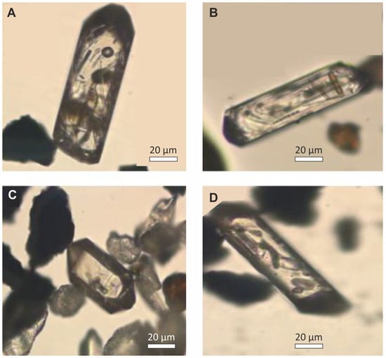 Analysis of the Morphological Features of Zircon Crystals. The aim of this study was to verify the volcanogenic origin of zircon crystals (zirconium orthosilicate, Zr(SiO4)) extracted from tonsteins. As is widely recognised, zircon crystallises in a tetragonal syngony. Additionally, zirconium is frequently isomorphically substituted by uranium, thorium, and other radioactive elements. The zirconium crystal lattice is highly susceptible to changes in the chemical composition of the growth medium and the crystallisation temperature. Variations in these parameters result in the crystallisation of different morphotypes, including short prismatic, isometric, and needle-like crystals [69].