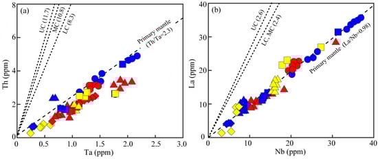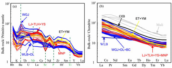 - Xiao, L.; Xu, Y.G.; Mei, H.J.; Zheng, Y.F.; He, B.; Pirajno, F. Distinct mantle sources of low-Ti and high-Ti basalts from the western Emeishan large igneous province, SW China: Implications for plume-lithosphere interaction. Earth Planet. Sci. Lett. 2004, 228, 525–546. [Google Scholar] [CrossRef]