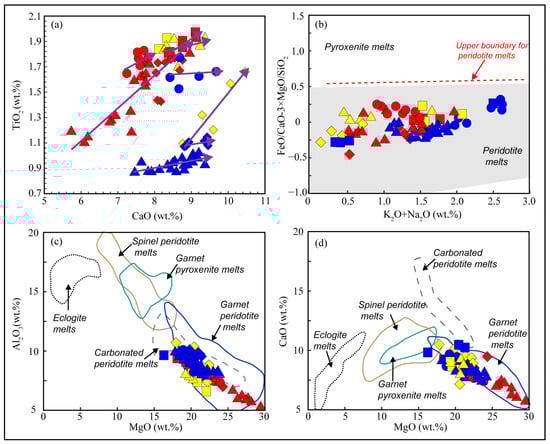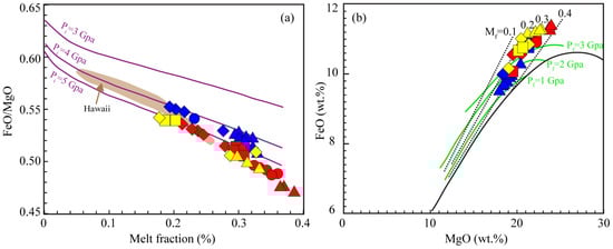 - Kogiso, T.; Hirschmann, M.M.; Frost, D.J. High pressure partial melting of garnet pyroxenite: Possible mafic lithologies in the source of ocean island basalts. Earth Planet. Sci. Lett. 2003, 216, 603–617. [Google Scholar] [CrossRef]