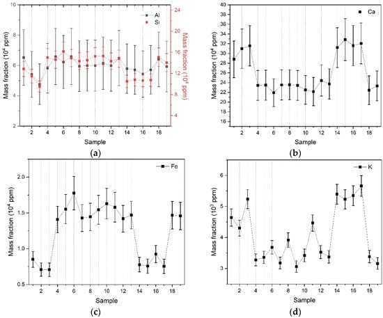 - Chubarov, V.M.; Pashkova, G.V.; Maltsev, A.S.; Mukhamedova, M.M.; Statkus, M.A.; Revenko, A.G. Possibilities and Limitations of Various X-ray Fluorescence Techniques in Studying the Chemical Composition of Ancient Ceramics. J. Anal. Chem. 2024, 79, 262–272. [Google Scholar] [CrossRef]