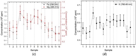| Na | 0.79 ± 0.04 | <LOD | 1.1 ± 0.06 | <LOD | <LOD | 0.44 ± 0.027 | 0.33 ± 0.02 | 1.7 ± 0.09 |