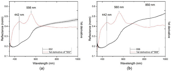 - Torrent, J.; Barrón, V. The Visible Diffuse Reflectance Spectrum in Relation to the Color and Crystal Properties of Hematite. Clays Clay Miner. 2003, 51, 309–317. [Google Scholar] [CrossRef]