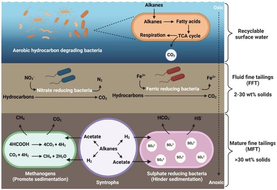 Yu et al. evaluated the inherent capability of indigenous microorganisms within tailings to degrade bitumen aerobically, and species like Rhodoferax, Acidovorax, and Pseudomonas sp. demonstrated potential for the same [71].