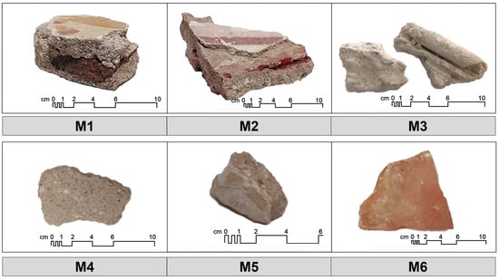 In this regard, lime layers of different composition were found in samples M1 and M5, suggesting that calcitic and magnesian limes were applied alternately on these mortars, something that was not detected in sample M2. According to our hypotheses regarding possible locations for each sample, samples M1 and M2 came from sites that were very close together. In this case, it is difficult to understand why M2 does not have layers of dolomitic lime like M1. This could be because the samples came from different walls, or perhaps because at some point in time the lime was applied in one small area, as a “patch”, something that seems unlikely given that when lime was applied as a disinfectant, they normally painted the entire room.