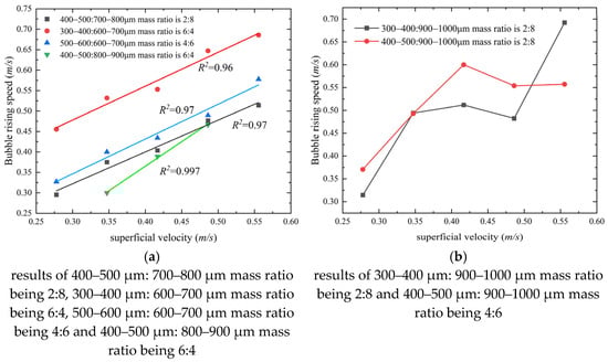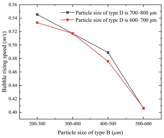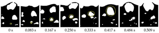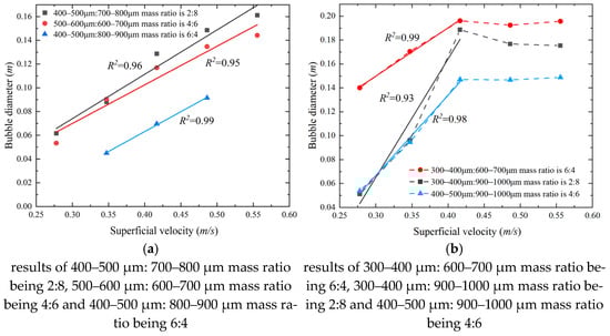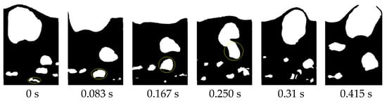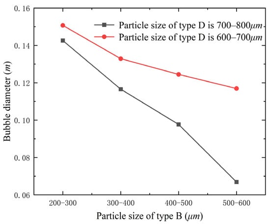 3] conducted experiments with particles of average particle sizes of 0.15 mm, 0.46 mm, and 0.79 mm, and studied the bubble behavior in two-dimensional beds by using digital image analysis technology. The results showed that the bubble diameter increases with the increase in fluidization velocity. Within a certain bed height H, the bubble diameter increases with the increase in the bed height, and when the bed height increases to a certain value, the bubble diameter will reach a stable maximum value. Zhang et al. [