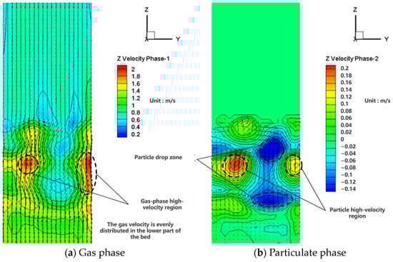 24] investigated the bubbling behavior and bed state of fluidized beds with different shapes based on the CFD-DEM method. The simulation results show that the fluidized bed in the trough has the most significant variation range and the largest bubble cross-sectional area. In addition, the velocity of the flow field is mainly larger at the bottom of the bed due to the effect of particles. With the increase in height, the velocity of the flow field relatively decreases. Jang et al. [