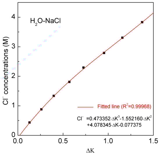 Figure 4. The dependence of Cl concentrations (M) on the calculated ΔK. The fitted equation is shown in a solid line.