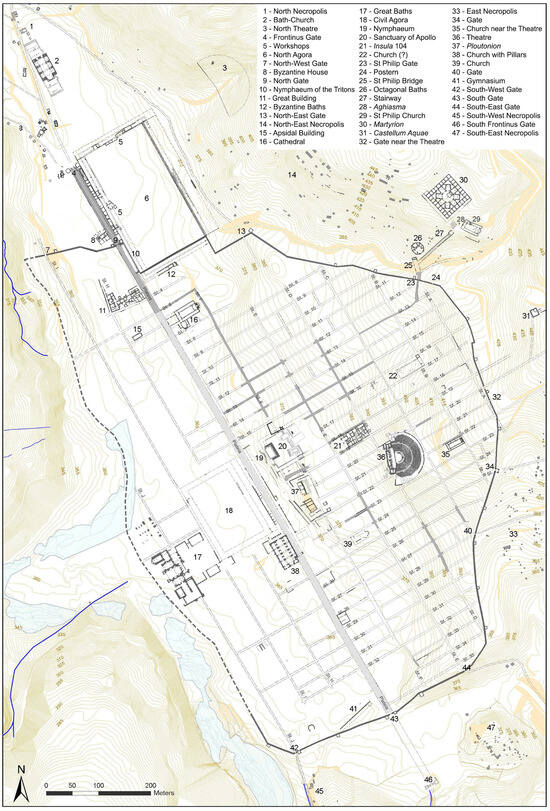 - Scardozzi, G. Nuovo Atlante di Hierapolis di Frigia. In Cartografia Archeologica Della Città e delle Necropoli; Ege Yayınları: Istanbul, Turkey, 2015. [Google Scholar]