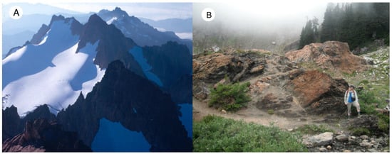 - Tabor, D.W.; Booth, D.B.; Vance, J.A.; Ford, A.B. Geological Map of the Sauk River 30 × 60-Minute Quadrangle, Washington; Misc. Investigations Map I2592; US Geological Survey: Denver, CO, USA, 2002. [Google Scholar]