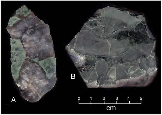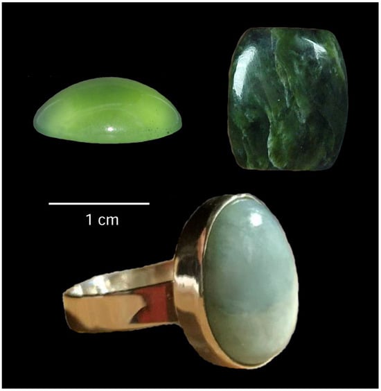 - Harlow, G.E.; Sorenson, S.S. Jade (nephrite and jadetite) and serpentinite: Metasomatic connectsion. Int. Geol. Rev. 2005, 47, 113–146. [Google Scholar] [CrossRef]