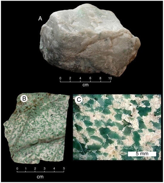 jade; nephrite; jadeite; serpentinite; listwanite; rodingite; garnet; diopside; vesuvianite; pumpellyite; sillimanite 1. Introduction
