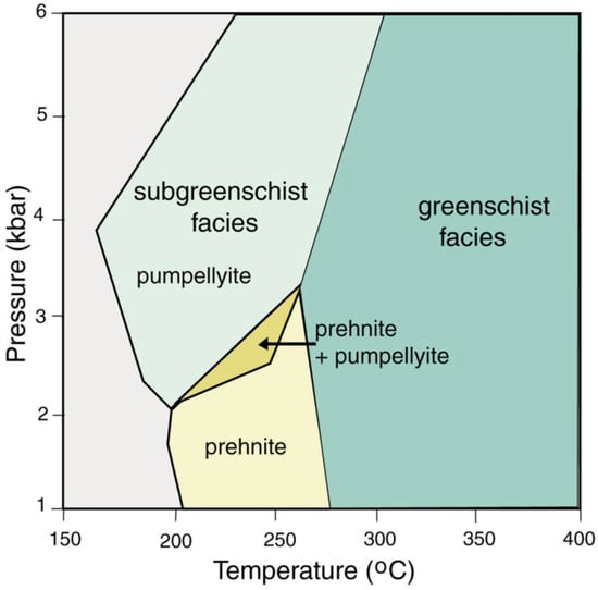 - Bucher, K.; Frey, M. Petrogenesis of Metamorphic Rocks, 6th ed.; Springer: Berlin/Heidelberg, Germany, 2013; 318p, ISBN 3-540-43130-6. [Google Scholar]