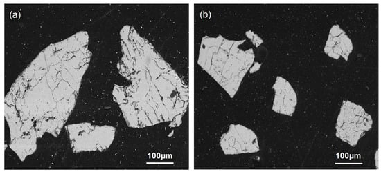 SEM images of quartz particles after high-temperature roasting: (a) coarse-grained quartz concentrate and (b) fine-grained quartz concentrate.