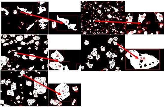 Due to the large number of mineral particles, the numbers in the figure are automatically reduced by the program for the convenience of display. They represent the number of particles. In order to be able to observe, a part of each picture is partially enlarged.