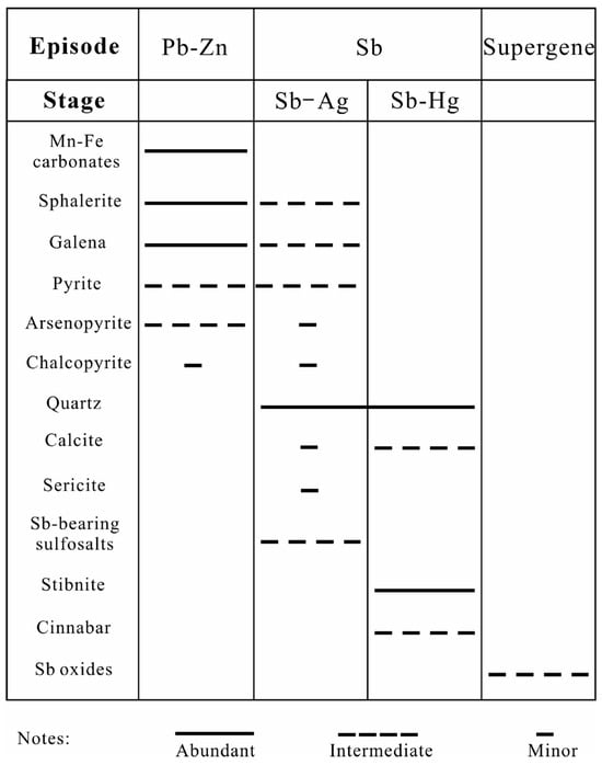 Mineral paragenetic sequence for the Zhaxikang mineralization (modified from Wang et al., 2020 []).