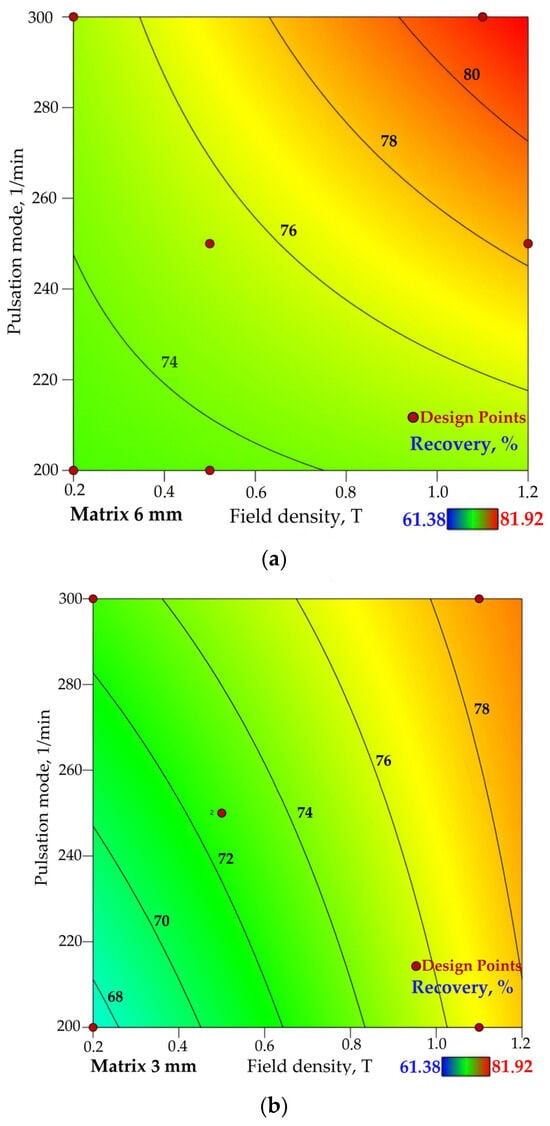 Figure 6 shows the results of high-gradient magnetic separation with variations of technological parameters.
