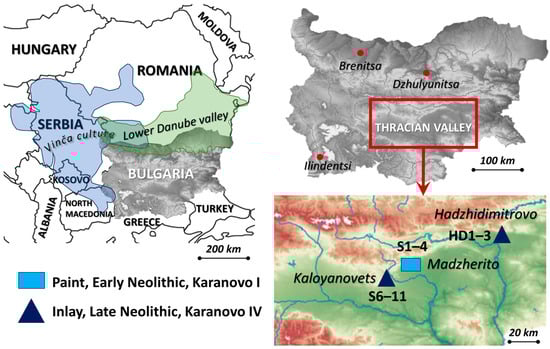 - Todorova, H.; Vajsov, I. Neolithic Period in Bulgaria (End of the Seventh-Sixth Millennium BC), Original Title: Novokamennata Epoha v Balgaria (Kraja Na Sedmoto-Sestoto Heljadoletie Predi Novata Era); Nauka i izkustvo: Sofia, Bulgaria, 1993; ISBN 954-02-0075-X. [Google Scholar]
