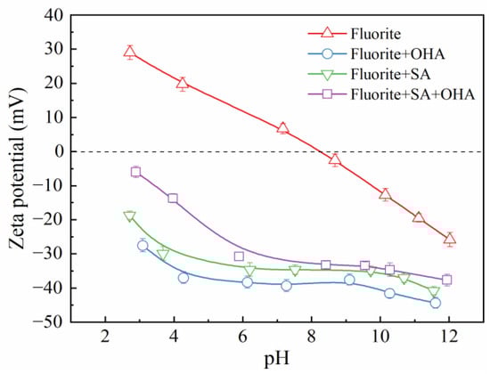 - Zhang, C.; Hu, Y.; Sun, W.; Zhai, J.; Yin, Z.; Guan, Q. Effect of Phytic Acid on the Surface Properties of Scheelite and Fluorite for Their Selective Flotation. Colloids Surf. A Physicochem. Eng. Asp. 2019, 573, 80–87. [Google Scholar] [CrossRef]