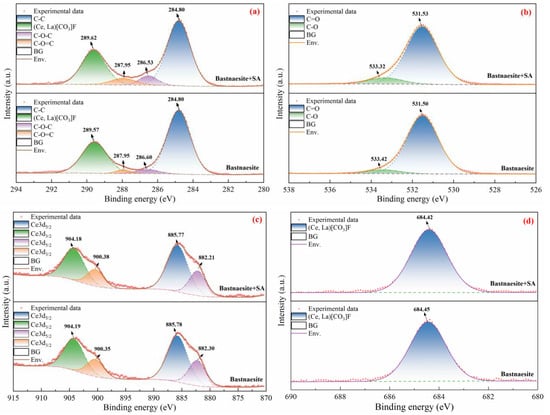 - Cao, S.; Cao, Y.; Liao, Y.; Ma, Z. Depression Mechanism of Strontium Ions in Bastnaesite Flotation with Salicylhydroxamic Acid as Collector. Minerals 2018, 8, 66. [Google Scholar] [CrossRef]