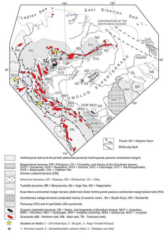 Trunilina, V.A.; Prokopiev, A.V. Aptian Li-F Granites of the Northern Verkhoyansk–Kolyma Orogenic Belt, Eastern Russia: Composition, Genesis, and Ore Potential. Minerals 2024, 14, 173. https://doi.org/10.3390/min14020173