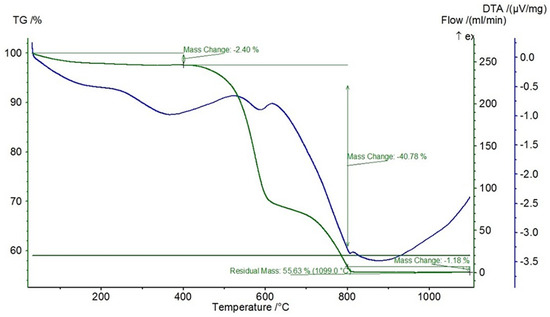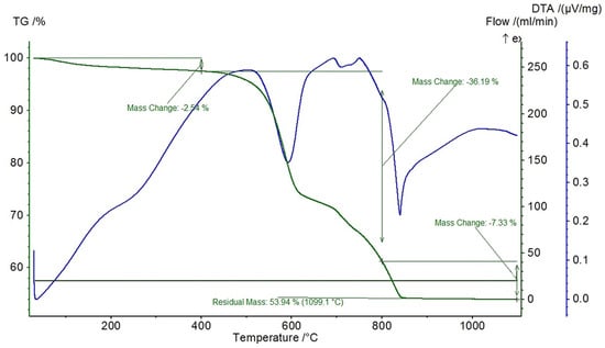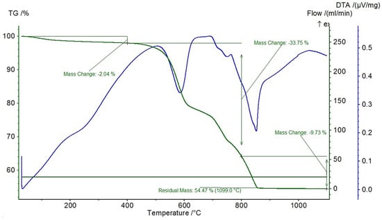 Differential thermal analysis (DTA) and thermogravimetric analysis (TGA) were performed on the different huntite ores using the STA 449 F3 Jupiter® thermal analyzer (NETZSCH, Selb, Germany). The DTA and TGA curves of huntite samples are given in Figure 4, Figure 5 and Figure 6.