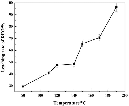 Variation in rare earth leaching rate with temperature (At 80 °C, 110 °C, 120 °C, 140 °C, 150 °C, 170 °C and 190 °C).