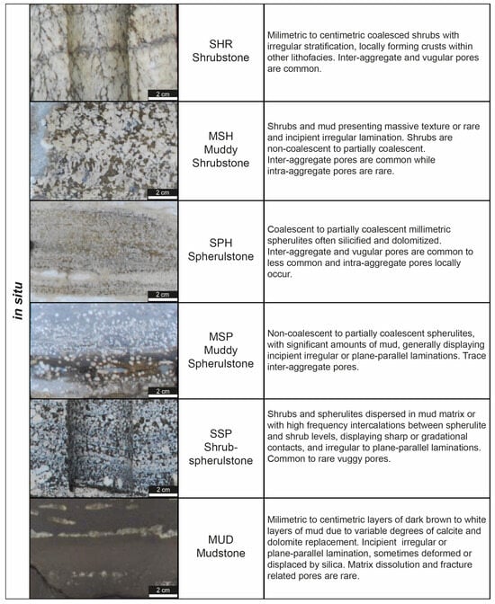 Summary of the main in situ lithotypes of the analyzed well cores according to the classification of De Ros and Oliveira [34].