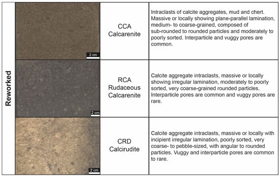 Summary of the main reworked lithotypes of the analyzed well cores according to the classification of De Ros and Oliveira [34].