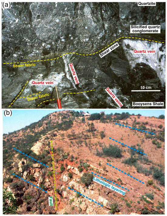 42. Roering, C.; Smit, C.A. Bedding parallel shear thrusting and quartz vein formation in Witwatersrand quartzite. J. Struct. Geol. 1987, 9, 419–427. [Google Scholar] [CrossRef]