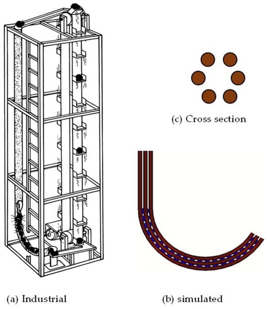 To that end, a code was written in Itasca’s Particle Flow Code (PFC) Fish language to generate the DBT geometry, with its lower part shown in Figure 1b. Otherwise, the straight column was 10 m, from which the drop ball was released to fall freely until it encountered the balls that had been generated in the lower curved column.