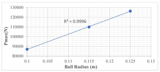 It can be observed that there is an almost perfect linear correlation between the radius and Pmax as shown in Figure 5. However, most importantly from the theoretical perspective, it is shown that larger balls will experience greater stress at the point of contact in a collision.
