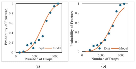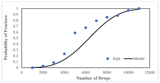 Figure 6 and Figure 7 show the failure cumulative frequency plotted with the probability of fracture model against the number of drops.