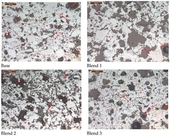 Comparison of microstructures of fired ores. (H—Hematite, M—Magnetite, S—Silicate, P—Pore).