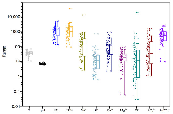 Box plot of geothermal waters from the study area.