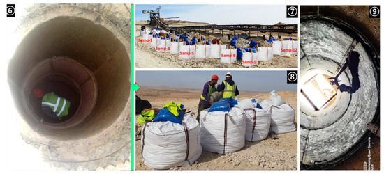 The digging wells works were carried out while respecting the specifications set at the outset following the conceptual model presented in detail in Figure 7. Therefore, the sampling procedure in a mining well has been established in accordance with the safety requirements on industrial production sites. It considered the measures to be put in situ to control the risks and situations arising from activities on the screening stockpiles site at the Benguerir mine.