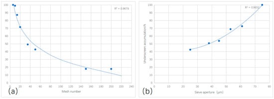 (a) Size curve of weathered granite sieve analysis; (b) particle size distribution curve after balance of product.