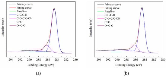 C1s fitting spectra of the BLT2−2 coal samples: (a) vitrinite-rich coal; (b) inertinite-rich coal.