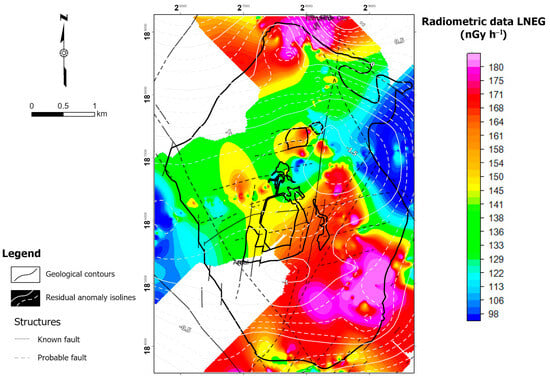 - Batista, M.J.; Leote Torres, L.; Leote, J.; Prazeres, C.; Saraiva, J.; Carvalho, J. Carta Radiométrica de Portugal (1:500,000); Laboratório de Energia e Geologia: Amadora, Portugal, 2013; ISBN 978-989-675-027-5. [Google Scholar]