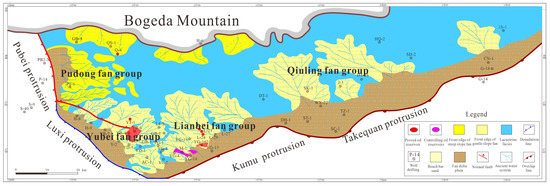 To sum up, the structural styles of oil reservoirs in Figure 18a,b are rather desirable. Accordingly, confidence remains for hydrocarbon exploration in pre-Jurassic formations, and the main exploration areas include the Southern Taibei Sag and the structural highs, nose-like uplifts and slopes of the Lianbei and Huobei sub-sags and the Central–Southern Shanbei sub-sags.