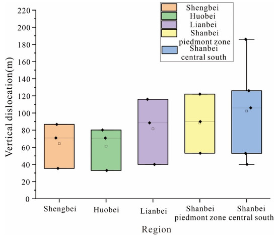 Figure 17. Box diagram of the fault amplitude of each sub-sag in the Taibei Sag.