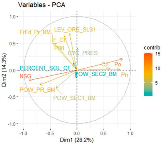 The importance of a variable or contribution of a variable to PC1 (first principal component) and PC2 (second principal component) is defined in Equation (2).