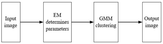 In this paper, the Gaussian mixture model image clustering algorithm based on the EM algorithm is proposed for use in mineral image segmentation. Firstly, mineral images are input, and the parameters of the model are determined using EM algorithm. Then, the Gaussian mixture model is used to cluster the images, and finally the segmented mineral images are obtained. The specific process is shown in Figure 1.