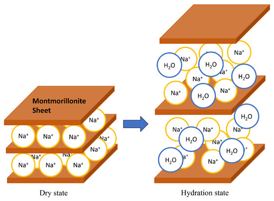 For the dry density, montmorillonite’s partial density as shown below [29] was used, focused on the density of only the montmorillonite part.