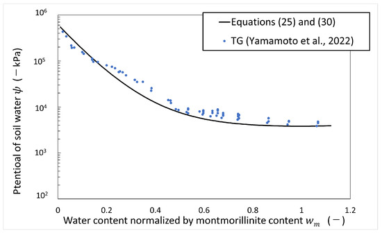 It is proposed to organize the potential of soil water using water content normalized by montmorillonite content [4,25]. Water content normalized by montmorillonite content is expressed as below.